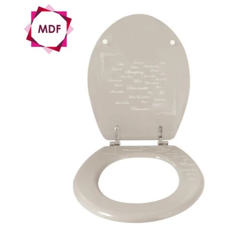 Abattant Wc de la marque MSV. HAUTE QUALITÉ: En matière MDF avec charnières en acier inoxydable. Donnez à votre salle de bain non seulement un confort parfait, mais aussi une ambiance classique. La finition de haute qualité du siège Wc garantit une grande stabilité et une longue durée de vie. Le dessous est muni de crampons en plastique pour éviter les glissades ou les bruits forts. Surface hygiénique, facile à nettoyer et résistante à l’humidité. LOOK INTEMPOREL: Couleur et finition tendance, MSV est toujours à la pointe de la mode avec ses modèles intemporels! Le disgn de l’abattant est imprimé sur les 3 faces pour un style et une finition encore plus travaillés. INFORMATION PRODUIT: Dimensions: 42,5×36,5x5cm Couleur: Taupe Matière: MDF