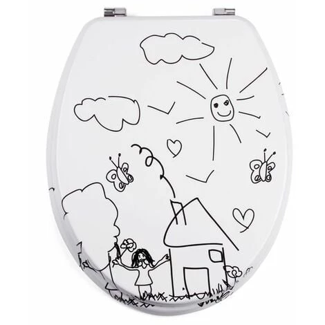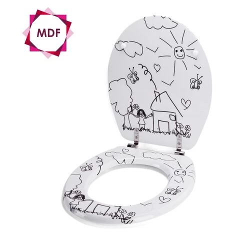 Abattant Wc de la marque MSV. HAUTE QUALITÉ: En matière MDF avec charnières en acier inoxydable. Donnez à votre salle de bain non seulement un confort parfait, mais aussi une ambiance classique. La finition de haute qualité du siège Wc garantit une grande stabilité et une longue durée de vie. Le dessous est muni de crampons en plastique pour éviter les glissades ou les bruits forts. Surface hygiénique, facile à nettoyer et résistante à l’humidité. LOOK INTEMPOREL: Couleur et finition tendance, MSV est toujours à la pointe de la mode avec ses modèles intemporels! Le disgn de l’abattant est imprimé sur les 3 faces pour un style et une finition encore plus travaillés. INFORMATION PRODUIT: Dimensions: 42,5×36,5x5cm Couleur: Noir & Blanc Matière: MDF
