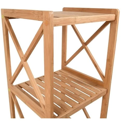 Etagère 3 niveaux de la marque MSV. Optimisez le rangement de votre salle de bain gâce à ce meuble qui fournit un grand espace de rangement sans encombrer votre salle de bain. Fabriqué en Bambou il est solide, ressitant à l’humidité et aux rayures. Son design naturel et moderne apportera une touche de charme à votre salle de bain. Dimensions: 36,5x33x85cm Couleur: Bambou Matière: Bambou