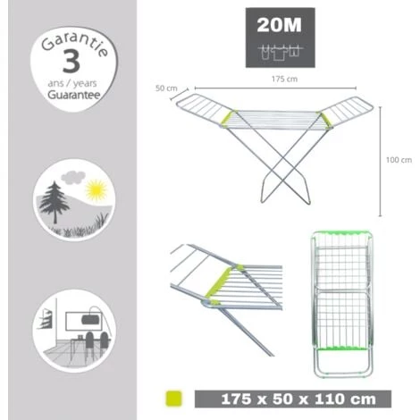 MSV Etendoir à Linge à Ailes En Alu 20M (emboûts Vert) – Vert