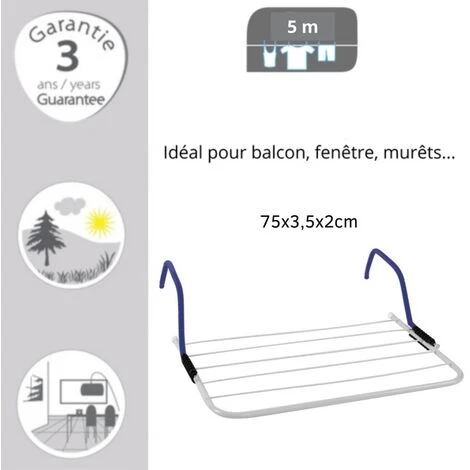 Etendoir de la marque MSV. Parfait pour faire sécher convenablement et aisément votre linge encombrant (vêtements et tissus délicats) sans qu’ils se froissent et se rétrécissent tout en optimisant votre espace. Vous n’aurez plus à faire sécher votre linge humide n’importe où. Idéal pour les petits espaces tel afin d’être accroché sur le balcon, le muret ou la fenêtre!