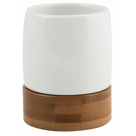 Gobelet de la marque MSV. Combinez à la fois le pratique et l’élégance grâce à ce Gobelet de la gamme TALLINN. Idéal pour le dentifrice, la brosse à dents ou bien simple gobelet à eau. Facile à nettoyer et à entretenir. Particulièrement résistant à l’humidité. S’adapte aux autres accessoires de salle de bain de la même série. Dimensions: 7,5×9,2cm Couleur: Blanc & Marron Matière: Céramique & Bambou