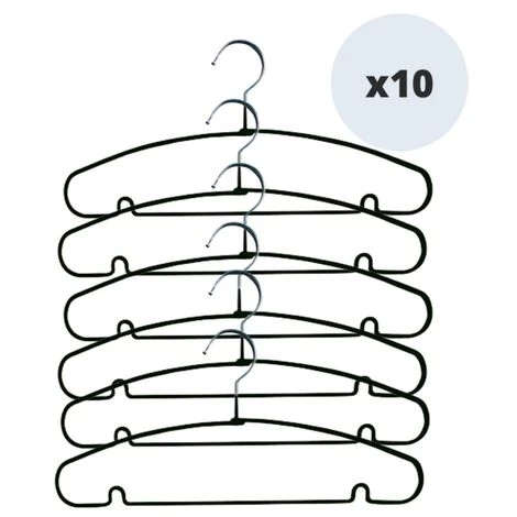 Cintre de la marque MSV. Cintre pour Optimisez et simplifiez le rangement. Grâce aux courbes des deux cotés, les épaules ne se plient pas et ne se déforment pas lors de la suspension ce qui permet de garder la forme d’origine d’un vêtement. Permet de maintenir tous types de vêtements. Fabriqué en Acier, bonne capacité de charge solide et décoratif. Dimensions: 39,5x19cm Couleur: Noir Matière: Acier