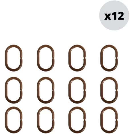 Lot de 12 anneaux pour rideau de douche de la marque MSV. Pratique à installer et à enlever grâce à la petite ouverture. Conception en forme de C ce qui permet de faire glisser facilement le rideau de douche sur la barre. Durable, léger et facile d’utilisation. Dimensions: 5,8×3,8cm Couleur: Marron Matière: Polypropylène