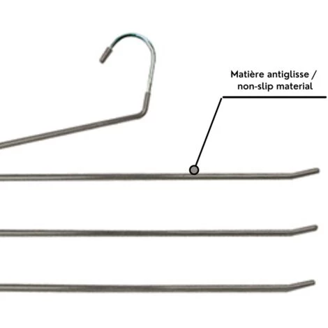Cintre pantalon de la marque MSV. Organisez et optimisez le rangement avec ce Cintre polyvalent permettant de ranger vos pantalons, foulards, écharpes avec simplicité. Suspendre sans plier pour éviter les marques et les plies et ainsi ne pas froisser les vêtements déjà repassés. Dimensions: 33x33cm Couleur: Taupe Matière: Acier