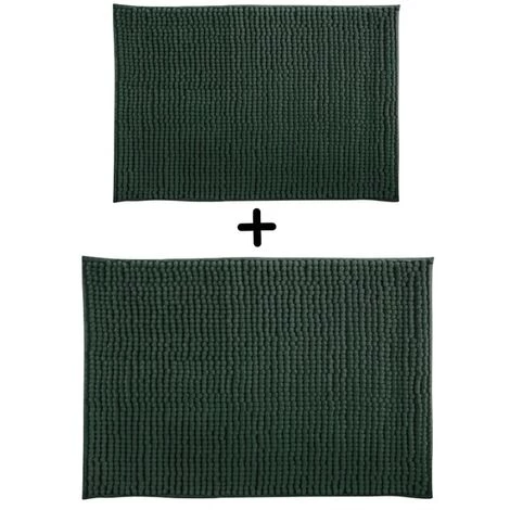 MSV Lot De 2 Tapis De Bain Microfibre CHENILLE 40x60cm & 60x90cm Vert Foncé – Vert