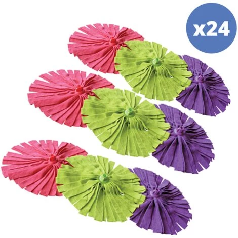 Lot de 24 franges bandelettes à Serpillière de rechange de la marque MSV. Composées en microfibre, les franges permetent un ménage optimal et en souplesse pour nettoyer tous les coins de la maison. La forte capacité de décontamination peut éliminer complètement la poussière en ne laissant aucune trace d’eau. Avec embout Hexagonal français. La serpillère est facile à séparer du manche du balai grâce à son pas de vis La tête de balai est idéale pour nettoyer les sols tels que le carrelage, les sols en pierre, le parquet etc. Elle passe parfaitement et facilement dans les escaliers et dans les coins de la maison. Couleur: multicolor Matière: Microfibre