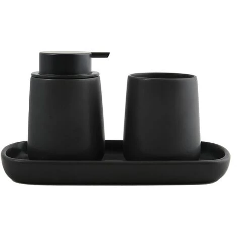 Lot accessoires à poser MAONIE de la marque MSV. ENSEMBLE D’ACCESSOIRES: un trio harmonieux comprenant un distributeur de savon, un gobelet et un plateau multi-fonctions pour y déposer des accessoires de beauté, vos produits pour la vaisselle dans la cuisine, ou même vos bâtonnets parfumés dans le salon. DESIGN : une conception pratique et une finition matte pour améliorer votre quotidien avec style. Son design minimaliste et son coloris tendance apportent une note subtile pour une salle de bain chic et raffinée. SERIE EXCLUSIVE MSV: la série MAONIE vous propose toute une gamme d’accessoires qui permettent de mettre de l’ordre dans la salle de bain et d’apporter une touche de raffinement. Composition : distributeur de savon, gobelet, plateau Couleur: Noir mat Matière : Céramique