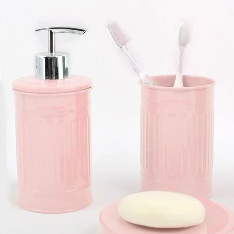 Lot de 4 accessoires de salle de bain en Acier HABANA Rose Pastel de la marque MSV. Elégant et pratique, ce set complet de salle de bain apportera une touche de modernité dans votre salle de bain. Composé d’un Distributeur de savon, Gobelet, Porte savon, Brosse WC en Acier. Facile à nettoyer et à entretenir. Dimensions: Distributeur 17cm; Gobelet 12,5cm; Porte savon 2cm; Brosse Wc 37cm