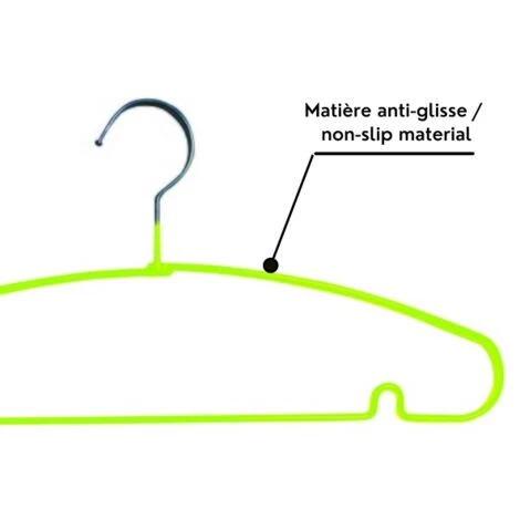 Cintre de la marque MSV. Cintre pour Optimisez et simplifiez le rangement. Grâce aux courbes des deux cotés, les épaules ne se plient pas et ne se déforment pas lors de la suspension ce qui permet de garder la forme d’origine d’un vêtement. Permet de maintenir tous types de vêtements. Fabriqué en Acier, bonne capacité de charge solide et décoratif. Dimensions: 39,5x19cm Couleur: Vert Matière: Acier