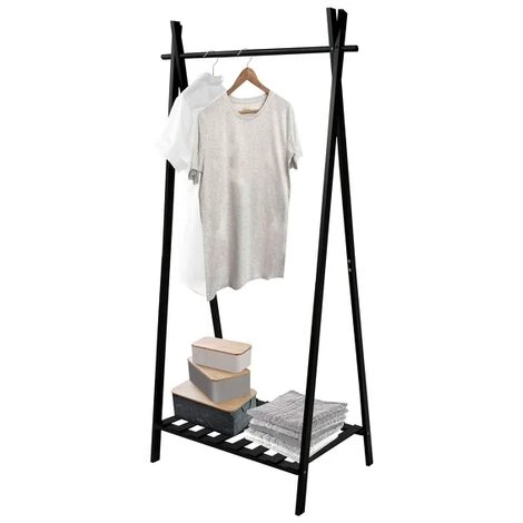 Portant à vêtements de la marque MSV. Une penderie ouverte au look distingué! Ce portant design en matière naturelle de bambou apportera un style décontracté dans votre intérieur. Vous disposerez d’un bel espace afin de pendre et ranger vos vêtements, chaussures ou autre accessoires. Pratique et élégant, le portant à vêtement est une solution de rangement optimal pour votre intérieur. Sa grande capacité de rangement vous permettra de maintenir l’ordre au sein de vôtre maison tout en apportant un style unique et élégant. Dimensions: 64/78×44,5x159cm Couleur: Noir & Bois Matière: Bambuo & MDF