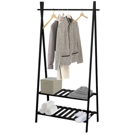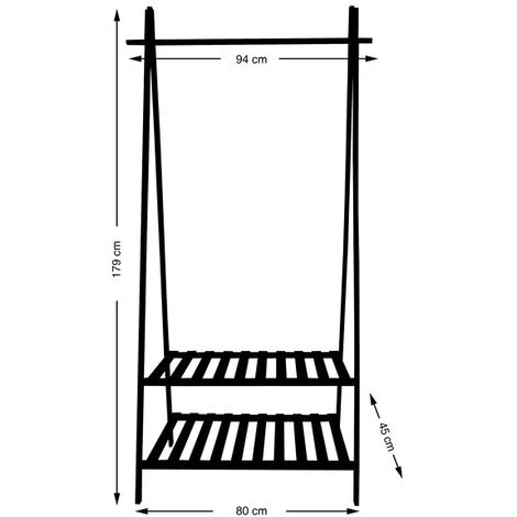 Portant à vêtements de la marque MSV. Une penderie ouverte au look distingué! Ce portant design en matière naturelle de bambou apportera un style décontracté dans votre intérieur. Vous disposerez d’un bel espace afin de pendre et ranger vos vêtements, chaussures ou autre accessoires. Pratique et élégant, le portant à vêtement est une solution de rangement optimal pour votre intérieur. Sa grande capacité de rangement vous permettra de maintenir l’ordre au sein de vôtre maison tout en apportant un style unique et élégant. Dimensions: 80/94x45x179cm Couleur: Noir & Bois Matière: Bambou & MDF