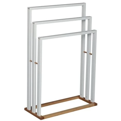 Porte Serviettes de la marque MSV. Indispensable pour votre salle de bain pour y faire sécher vos serviettes, gants de toilette, serviettes à mains ou même en tant que valet de chambre pour y déposer vos vêtements ou votre peignoir. Le séchage de votre linge sera d’autant plus rapide grâce à l’agencement des barreaux et leur espacement favorisant la circulation de l’air. Design moderne qui se fond facilement dans tous les styles d’intérieur. Dimensions: 55x24x82cm Couleur: Blanc Matière: MDF