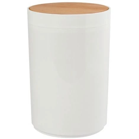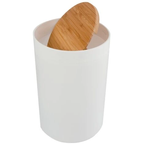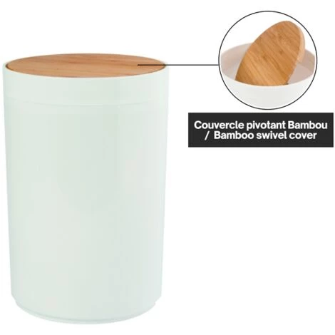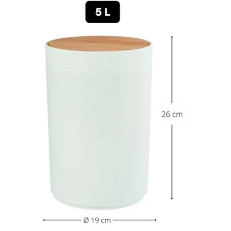 Poubelle à bascule de la marque Spirella. DESIGN MODERNE: Cette Poubelle élégante de la collection OSLO s’intègrera parfaitement dans tous les intérieurs de votre habitation: Elle peut être placée dans les wc, la salle de bain, la cuisine, le bureau etc… Vous n’aurez aucune envie de camoufler votre poubelle grâce à son look moderne. Elle s’adaptera donc parfaitement à votre déco. FACILE A UTILISER: Solution hygiénique et propre pour éliminer les déchets. Poubelle à couvercle basculant et amovible pour une séparation respectueuse de l’environnement. INFORMATION PRODUIT: Dimensions: 18×26,3cm Contenance: 5L Couleur: Blanc Matière: Polypropylene & Bambou