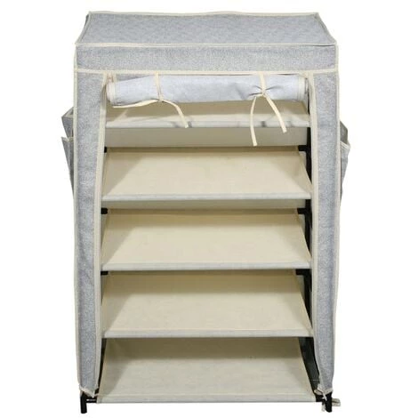 Rangement à chaussures avec étagères et poches latérale Gris de la marque MSV. Solution de rangement pratique et rapide à monter, ne laissez plus trainer vos chaussures n’importe ou! Le tissu d’habillage non tissé permet de protéger vos affaires de la poussière et de la saleté tout en laissant passer l’air à l’intérieur de l’armoire. Des poches latérales viennent compléter cette armoire compacte. Barres en Fer pour plus de solidité. Dimensions: 60x30x88cm Couleur: Gris Matière: PP