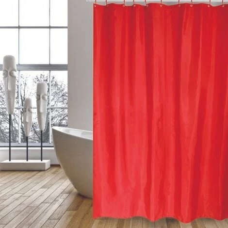 Rideau de douche de la marque MSV. Anti-moisissure, ce rideau de douche Textile Polyester est enduit d’un revêtement antibactérien pour prévenir les taches et la formation de moisissures. Donnez du style à votre salle de bain: le rideau de douche est fait de 100% polyester et a un design moderne. Pour le montage, des anneaux sont inclus dans la livraison. Il suffit de l’accrocher et le plaisir de la douche peut commencer Particulièrement durable et facile à nettoyer, lavable à 30°. Dimensions: 180x200cm Couleur: Rouge Matière: Polyester