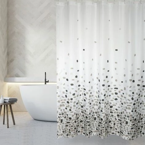 Rideau de douche de la marque MSV. MADE IN EUROPE, QUALITÉ PREMIUM certifié Confiance Textile, norme Oeko Tex. Tissu imperméable et anti-moisissure, ce rideau de douche est enduit d’un revêtement antibactérien pour prévenir les taches et la formation de moisissures. Donnez du style à votre salle de bain: Design moderne le rideau de douche est fait de 100% Polyester. Particulièrement durable et facile à nettoyer, lavable à 30°. Pour le montage, des anneaux sont inclus dans la livraison. Dimensions: 180x200cm Couleur: Taupe Matière: Polyester