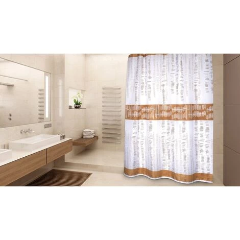 Rideau de douche de la marque MSV. MADE IN EUROPE, QUALITÉ PREMIUM certifié Confiance Textile, norme Oeko Tex. Tissu imperméable et anti-moisissure, ce rideau de douche est enduit d’un revêtement antibactérien pour prévenir les taches et la formation de moisissures. Donnez du style à votre salle de bain: Design moderne le rideau de douche est fait de 100% Polyester. Particulièrement durable et facile à nettoyer, lavable à 30°. Pour le montage, des anneaux sont inclus dans la livraison. Dimensions: 180x200cm Couleur: Marron & Blanc Matière: Polyester