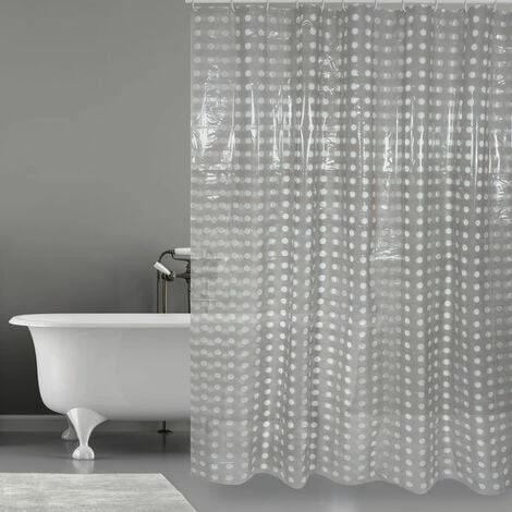 Rideau de douche de la marque MSV. Anti-moisissure, ce rideau de douche en PVC est enduit d’un revêtement antibactérien pour prévenir les tâches et la formation de moisissures. Donnez du style à votre salle de bain : le rideau de douche est fait de 100% vinyle et a un design moderne. Pour le montage, des anneaux sont inclus dans la livraison. Il suffit de l’accrocher et le plaisir de la douche peut commencer ! Revêtement antibactérien et hydrofuge, idéal pour la douche ou le bain. Particulièrement durable et facile à nettoyer, lavable à 40°c. Dimensions: 180x200cm Couleur: Gris Matière: PVC