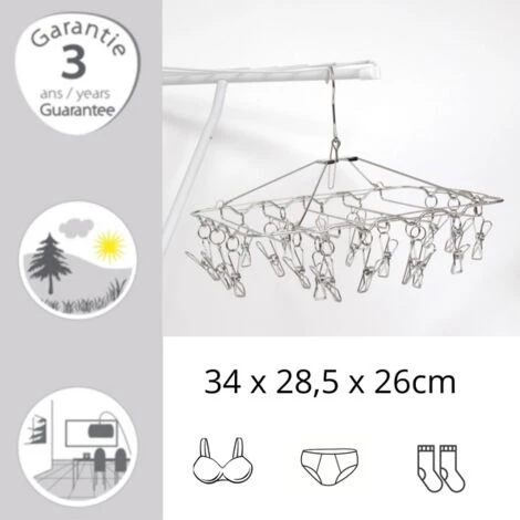 Séchoir de la marque MSV. Parfait pour faire sécher convenablement et aisément vos sous-vêtements tels que les chaussettes et la lingerie tout en optimisant votre espace de buanderie ou n’importe qu’elle pièce de votre maison. Vous n’aurez plus à faire sécher votre linge humide n’importe où. Dimensions: 34×28,5x26cm Couleur: Inox Matière: Inox