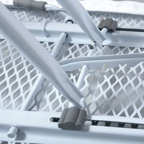 Table à repasser de la marque MSV. Design moderne et grand confort d’utilisation. Repassez avec plaisir grâce à cette robuste et légère table à repasser. 10 positions et hauteur ajustable jusqu’à 90cm. Taille repose-fer: 25,5x 18,5cm. Conçus pour éviter tout trébuchement glissade ou dommage les embouts antidérapants au niveau des pieds. Dimensions: 130x33cmx90cm Couleur: Noir & Blanc Matière:Acier