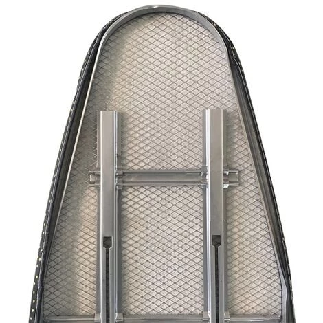 Table à repasser de la marque MSV. Spécial Centrale Vapeur! MADE IN EUROPE. Design moderne et grand confort d’utilisation. Repassez avec plaisir grâce à cette robuste table à repasser de Haute Qualité. Le dessous de la table est en métal déployé afin de garantir une qualité sans défaut. Conçus avec des pieds antidérapants pour éviter tout trébuchement glissade ou dommage. Vous disposerez de 8 positions différentes afin que la table vous soit adaptée. La hauteur maximale est 90cm et la hauteur minimale 60cm. Housse 100% coton noire et dorée en mousse et molletonnée de 6mm. Le coton est perméable à la vapeur. La taille du repose fer est de 29x42cm. INFORMATION PRODUIT: Dimenensions: 162/132x46x90cm Couleur: Noir Matière: Acier