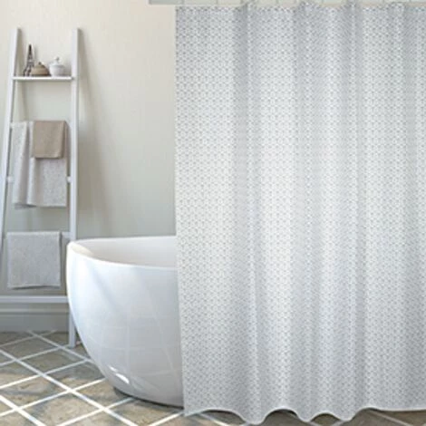 Le rideau de douche Mosaik en plastique de MSV mesure 180 cm de large et est imperméable. Il est muni d’ourlets cousus et d’œillets pour les anneaux.