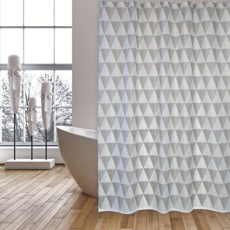 Le rideau de douche Narok gris en polyester de MSV mesure 180 cm de large et est muni d’œillets pour les anneaux.
