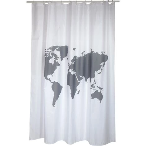 Le rideau de douche en plastique de MSV à imprimé planisphère mesure 180 cm de large et est imperméable. Il est muni d’ourlets cousus et d’œillets pour les anneaux.