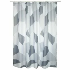 MSV Rideau De Douche Polyester ORIGAMI 180x200cm Gris – Anneaux Inclus – Gris