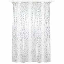 MSV Rideau De Douche PVC MOSAIQUE 180x200cm Gris Clair – Anneaux Inclus – Gris