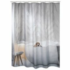 MSV Rideau De Douche Polyester 180x200cm DOGGY BATH Gris – Anneaux Inclus – Gris