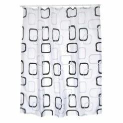 MSV Rideau De Douche Polyester 180x200cm Motif Marelle Noir – Anneaux Inclus – Noir