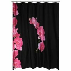 MSV Rideau De Douche Polyester LANYU 180x200cm Motif Fleurs Noir & Rose – Anneaux Inclus – Noir