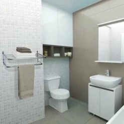 MSV Porte Serviettes & étagère Murale En Acier Chromé – Gris