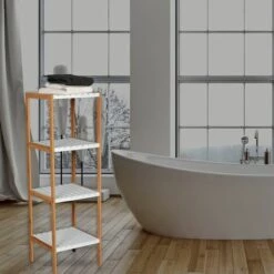 MSV Etagère Meuble De Rangement 4 Niveaux Bambou & MDF Blanc – Blanc