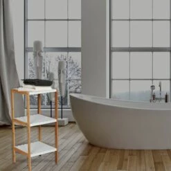 MSV Etagère Meuble De Rangement 3 Niveaux Bambou & MDF Blanc – Blanc